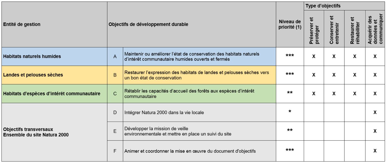 Le Document d'objectifs établit 6 objectifs de développement durable sur le site Natura, declinés en 39 mesures de gestion.